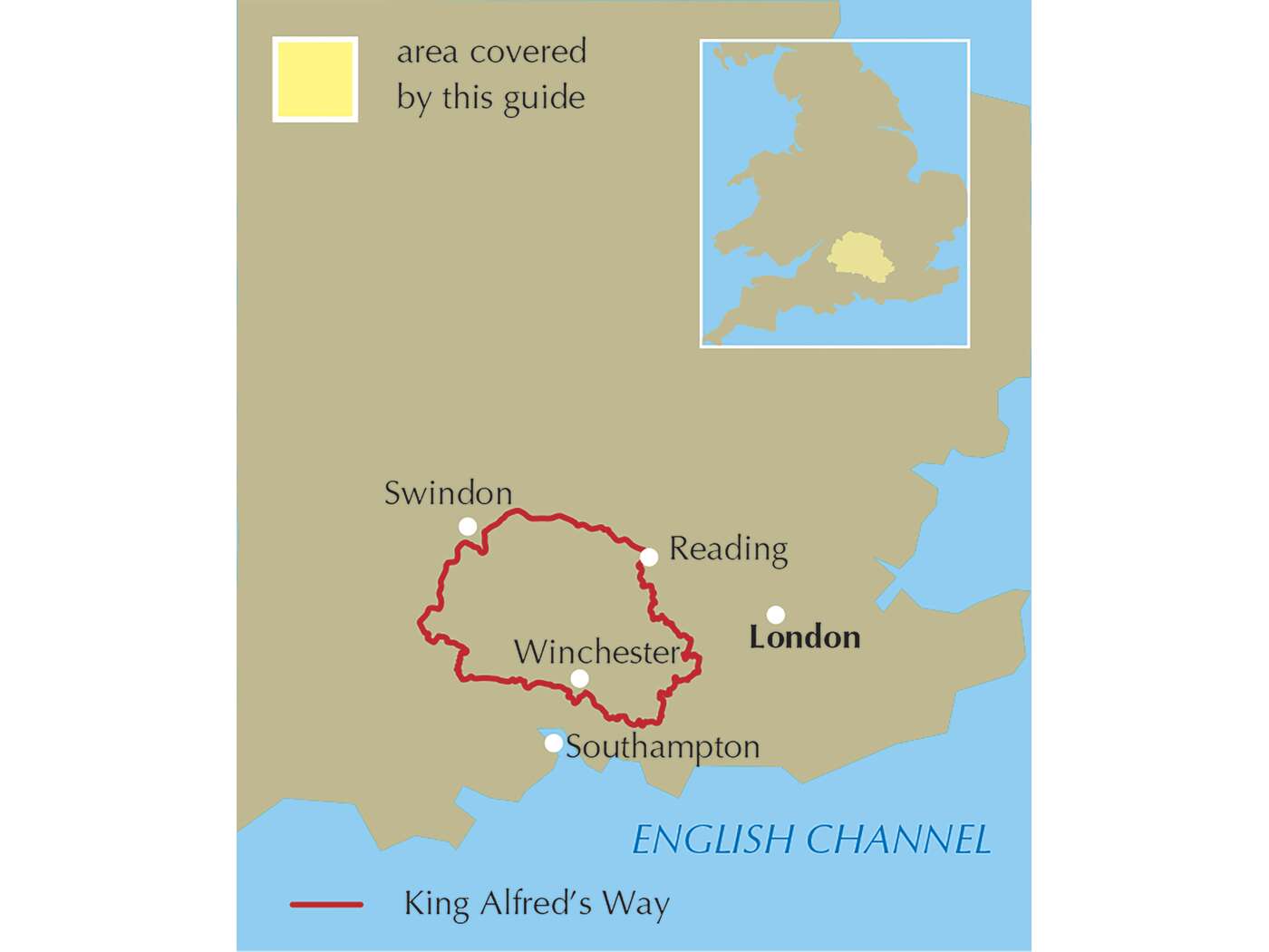 A guidebook to bikepacking King Alfred's Way, a 353km loop in seven stages between 40 and 60km (25-37 miles), with options for wild camping, campsites and accommodation.