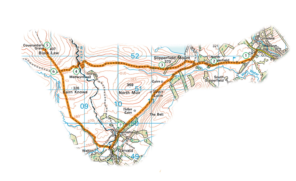 This update refers to all editions and printings. Please note this new route variation avoiding the farm steading at Medwynhead.