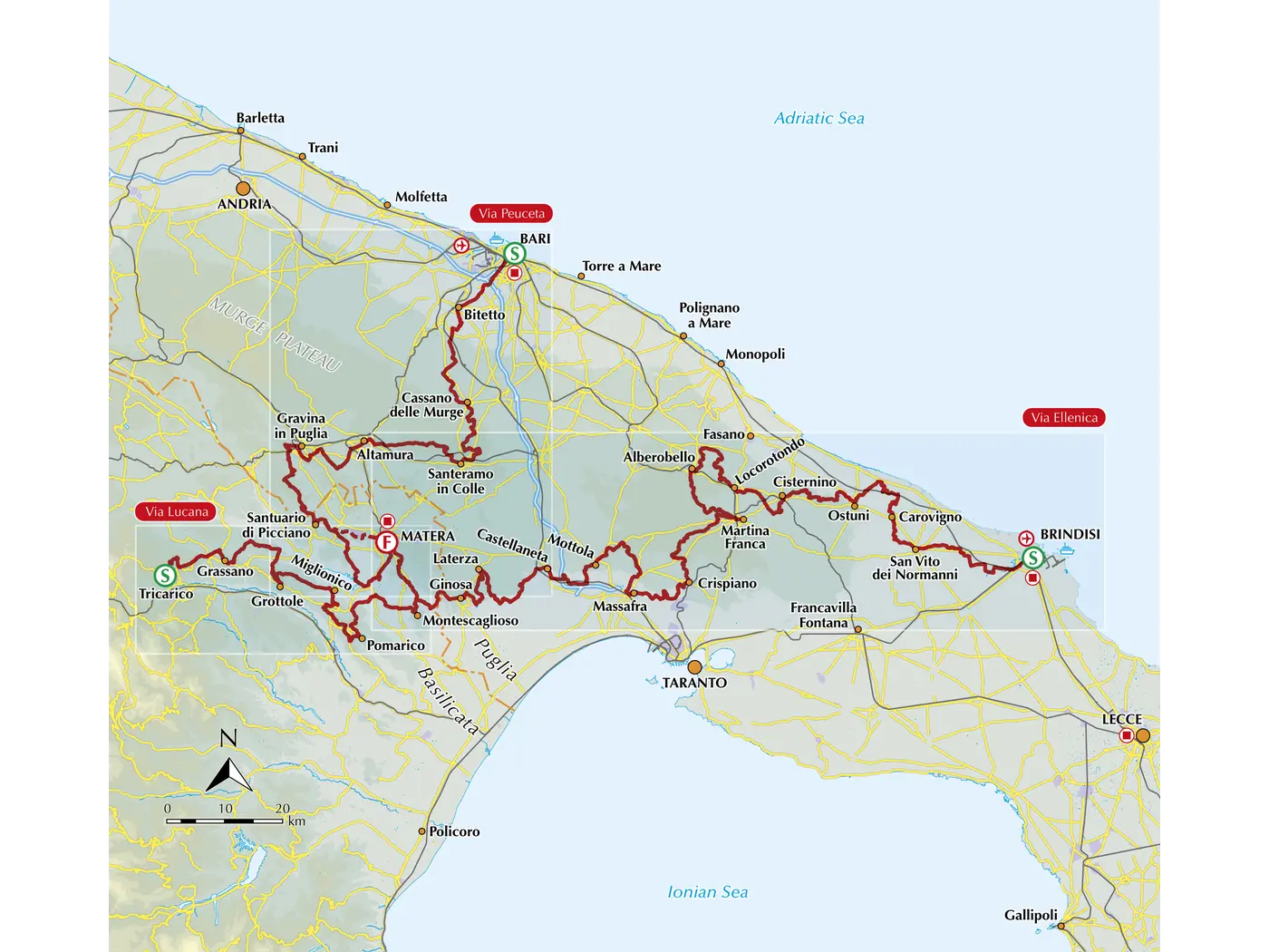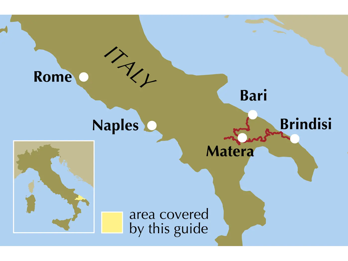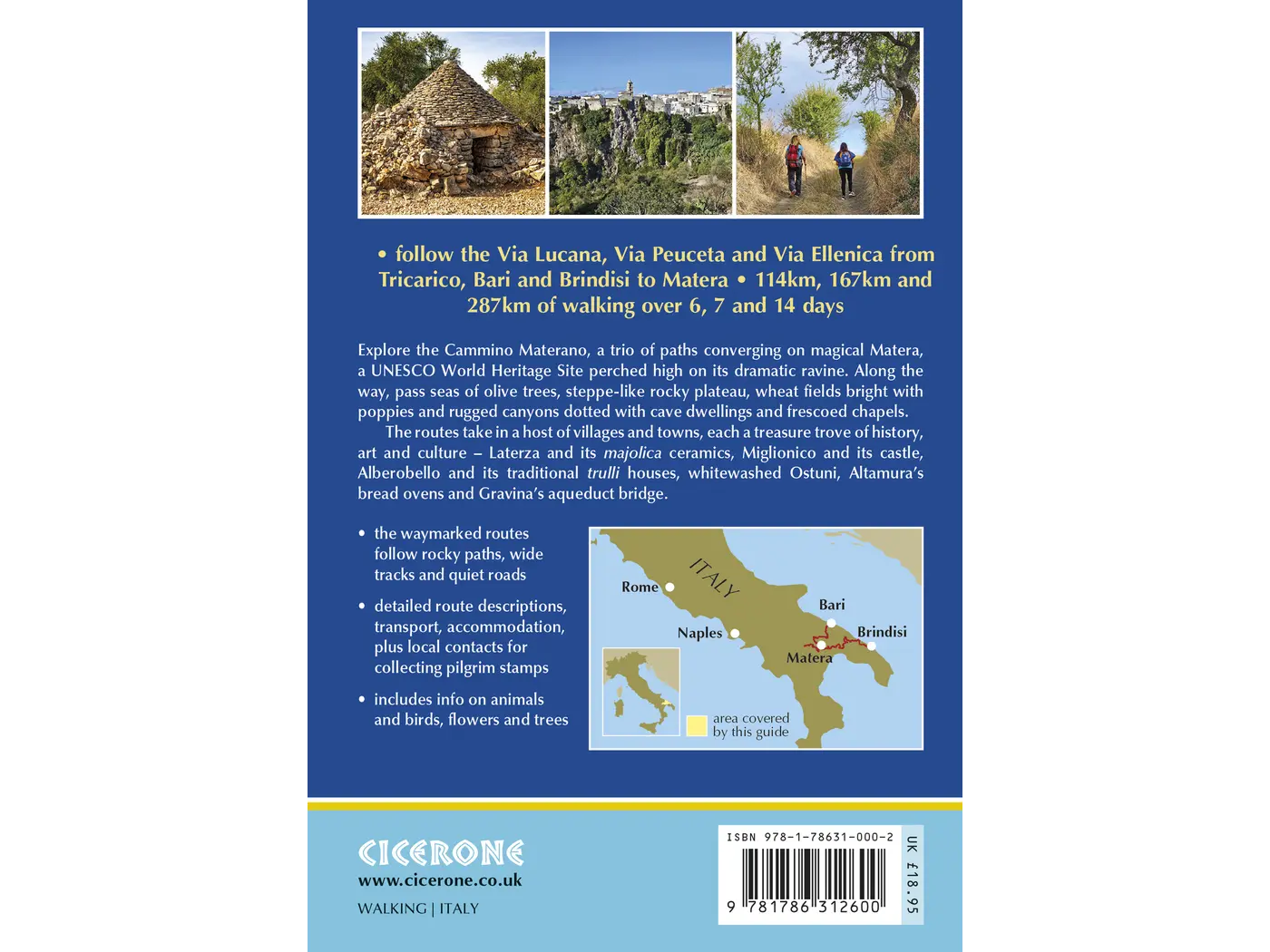 A guidebook to walking to Matera on the Via Peuceta, Via Ellenica and Via Lucana, three long-distance cammino routes through southern Italy's Puglia and Basilicata regions.